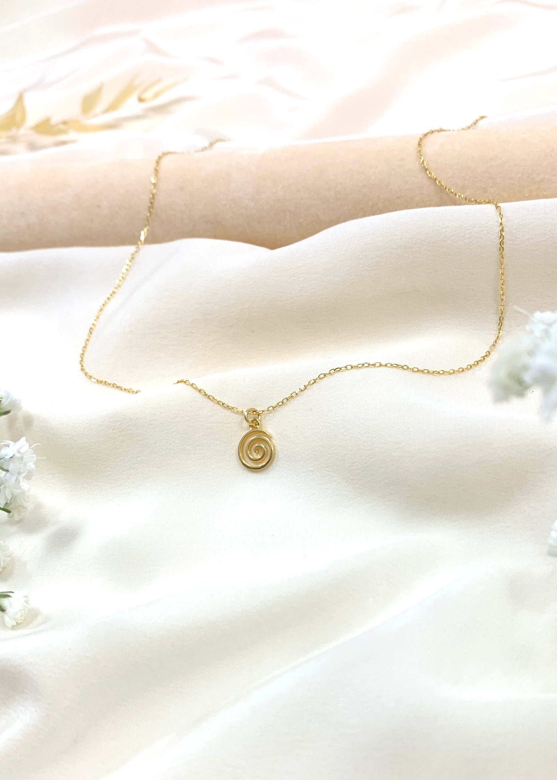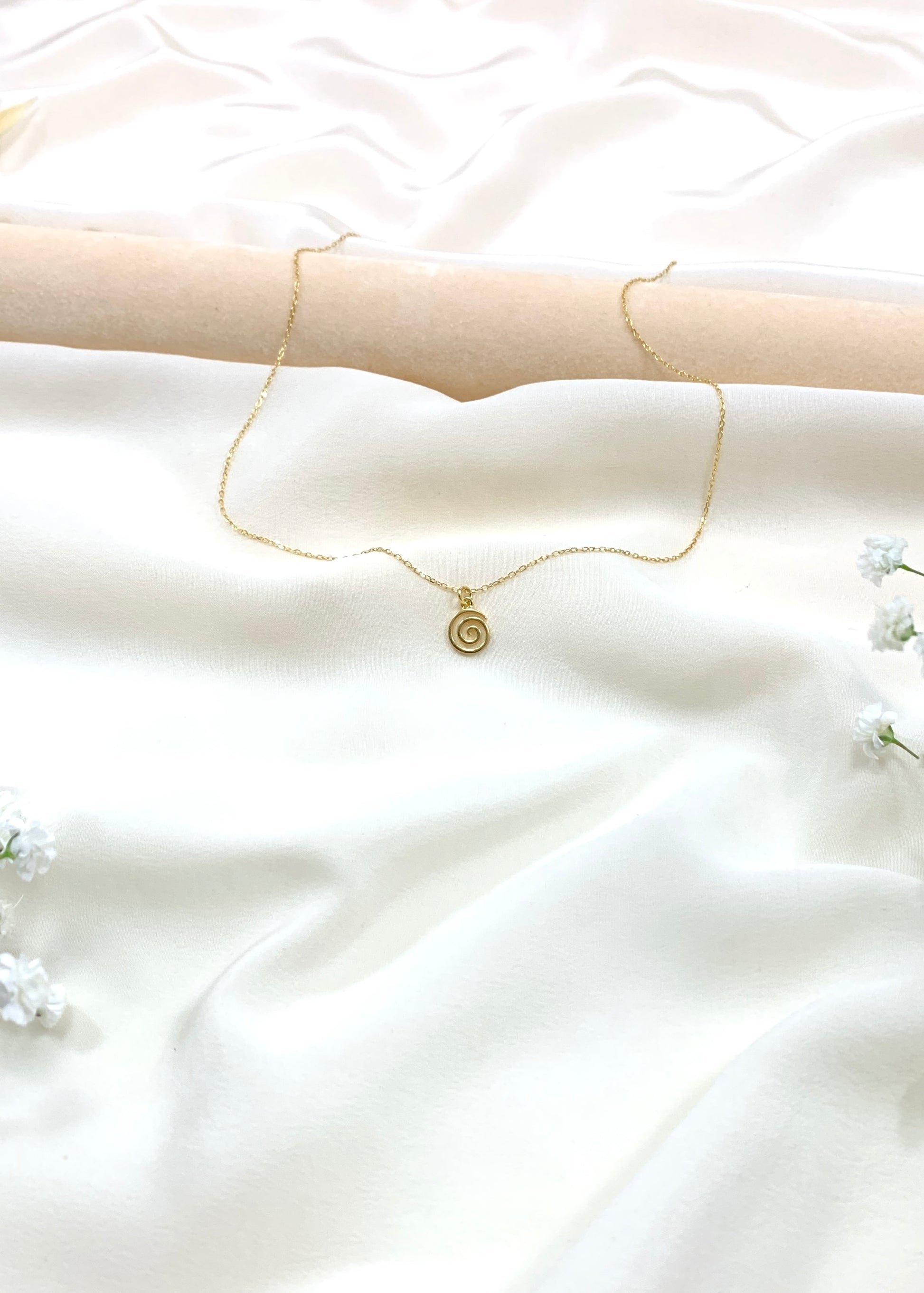 Η σπειροειδής μορφή του μενταγιόν με διάμετρο 1 εκατοστό, αποτυπώνει αυτή τη συνεχή κίνηση, θυμίζοντας πως το φως και η αρμονία δεν είναι στιγμές, αλλά ροή. Η αλυσίδα του, μήκους 40 cm με προέκταση 5 cm, προσφέρει ευελιξία εφαρμογής και μια διακριτική λάμψη που αγκαλιάζει απαλά τον λαιμό, αφήνοντας στον κάτοχό του την αίσθηση μιας ήσυχης, σίγουρης πολυτέλειας.