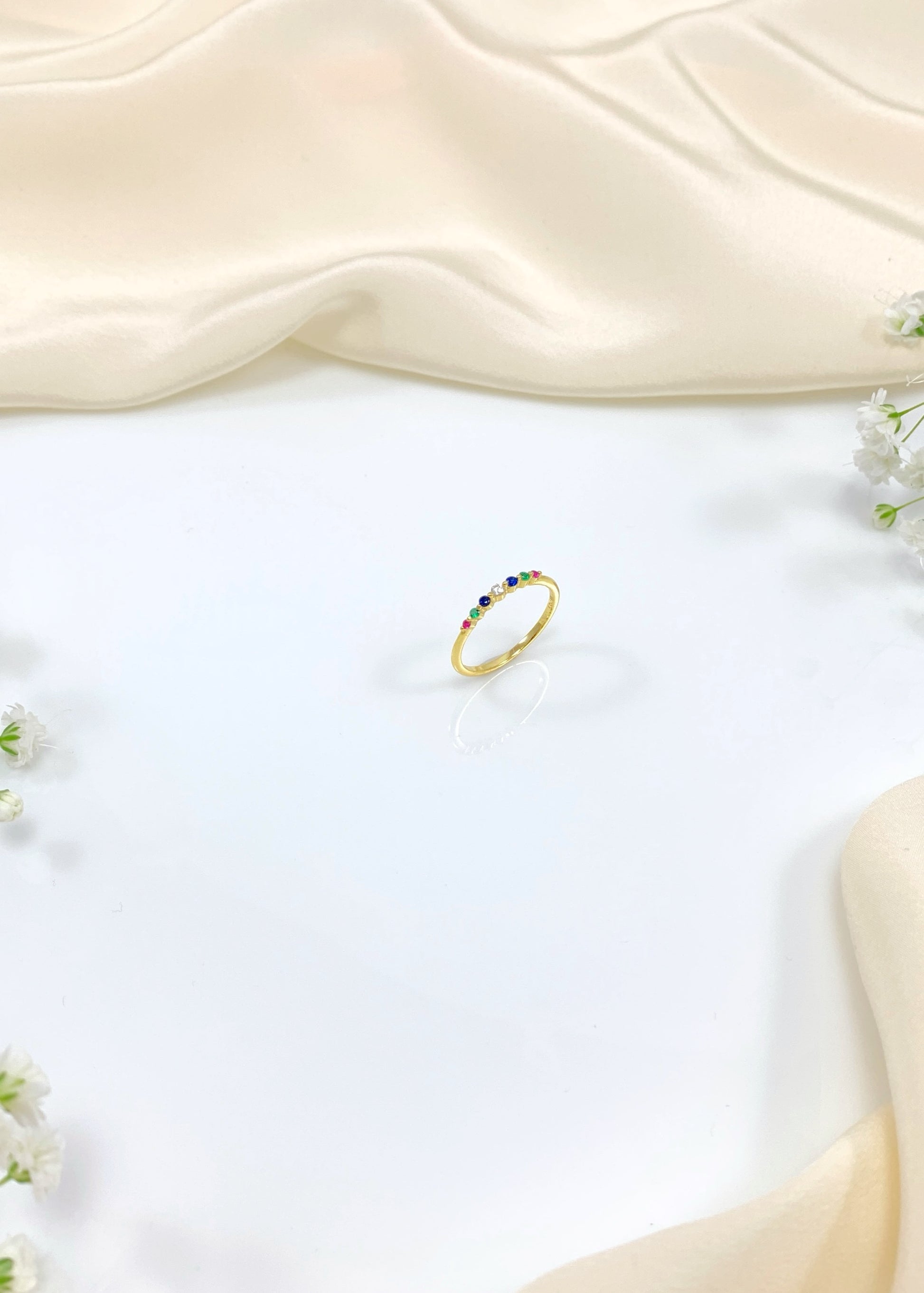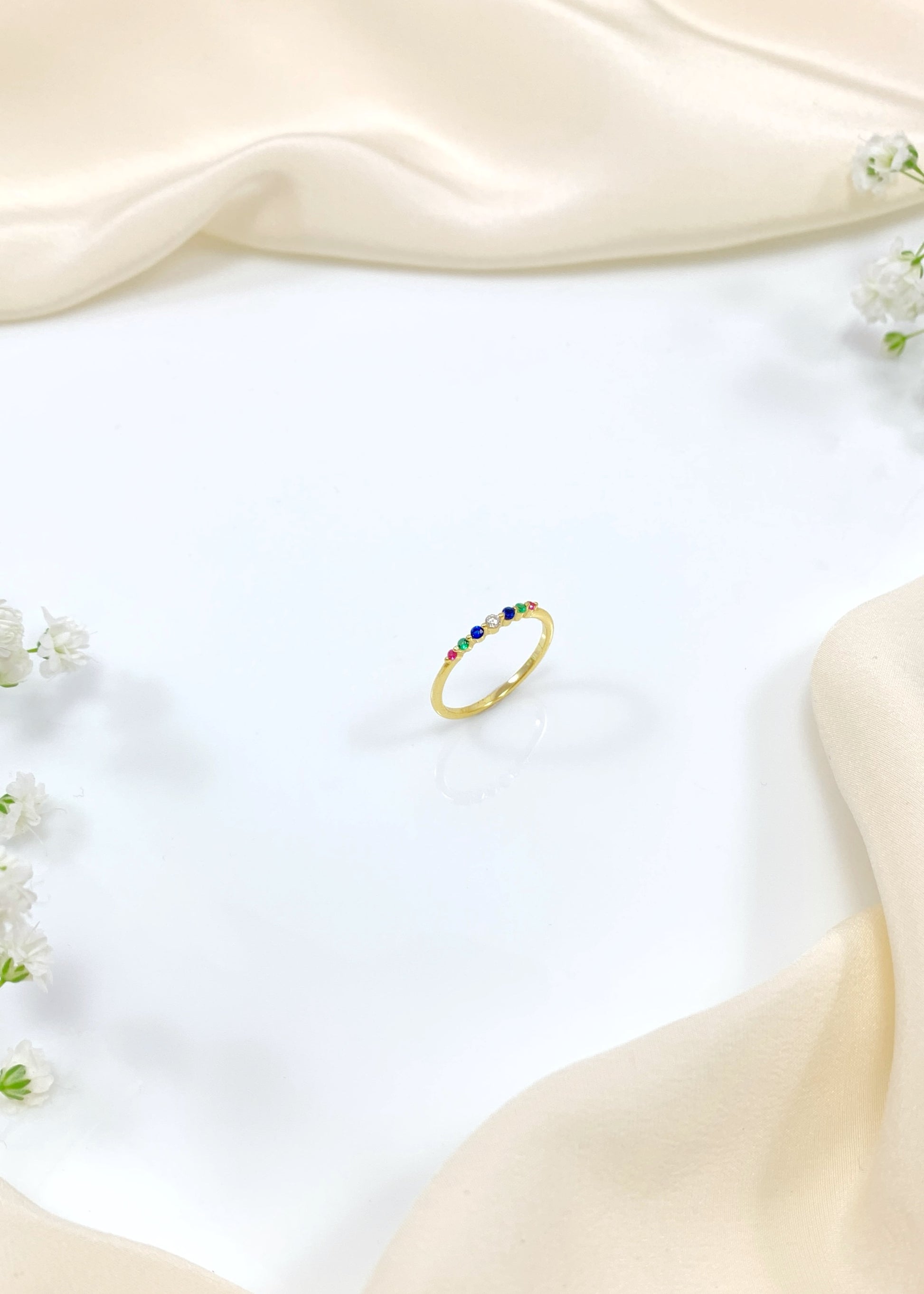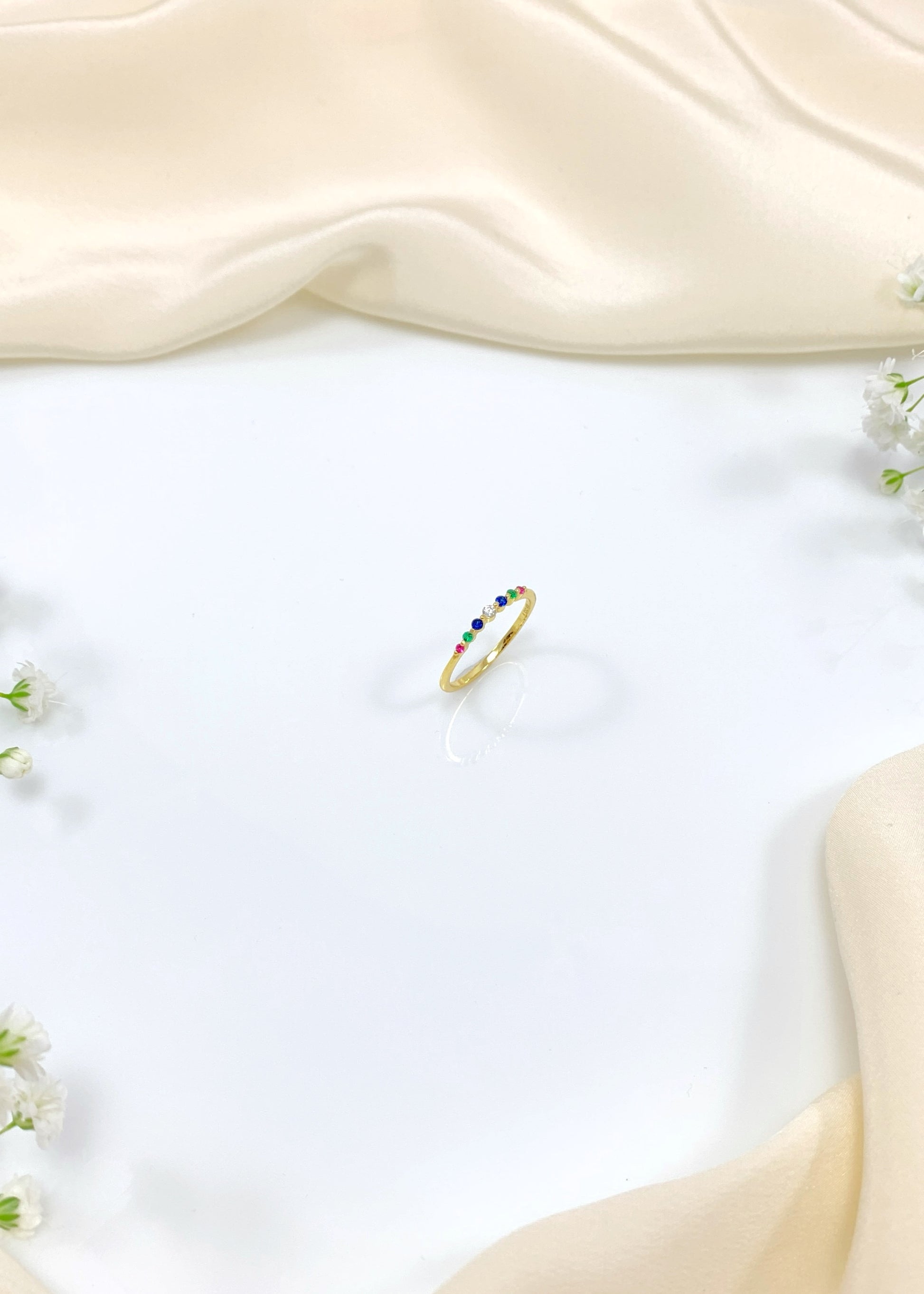 Το δαχτυλίδι Aurora ξεχωρίζει για τη λεπτή του γραμμή και τη συνεχόμενη σειρά από πολύχρωμα, μίνιμαλ ζιργκόν που δημιουργούν μια διακριτική χρωματική συνοχή. Ο καθαρός, μινιμαλιστικός του χαρακτήρας το καθιστά ιδανικό τόσο για καθημερινή χρήση όσο και για συνδυασμούς με άλλα δαχτυλίδια.