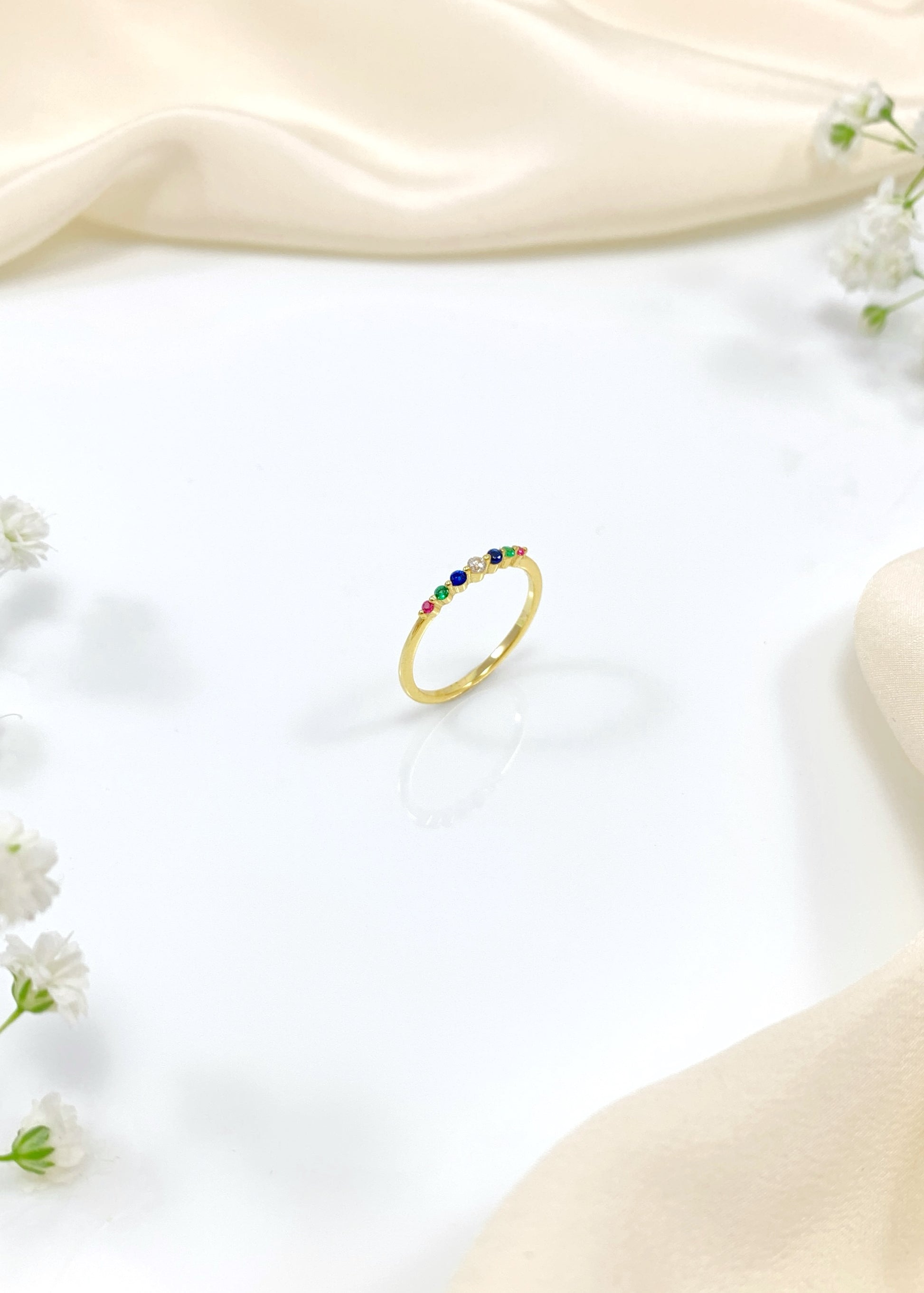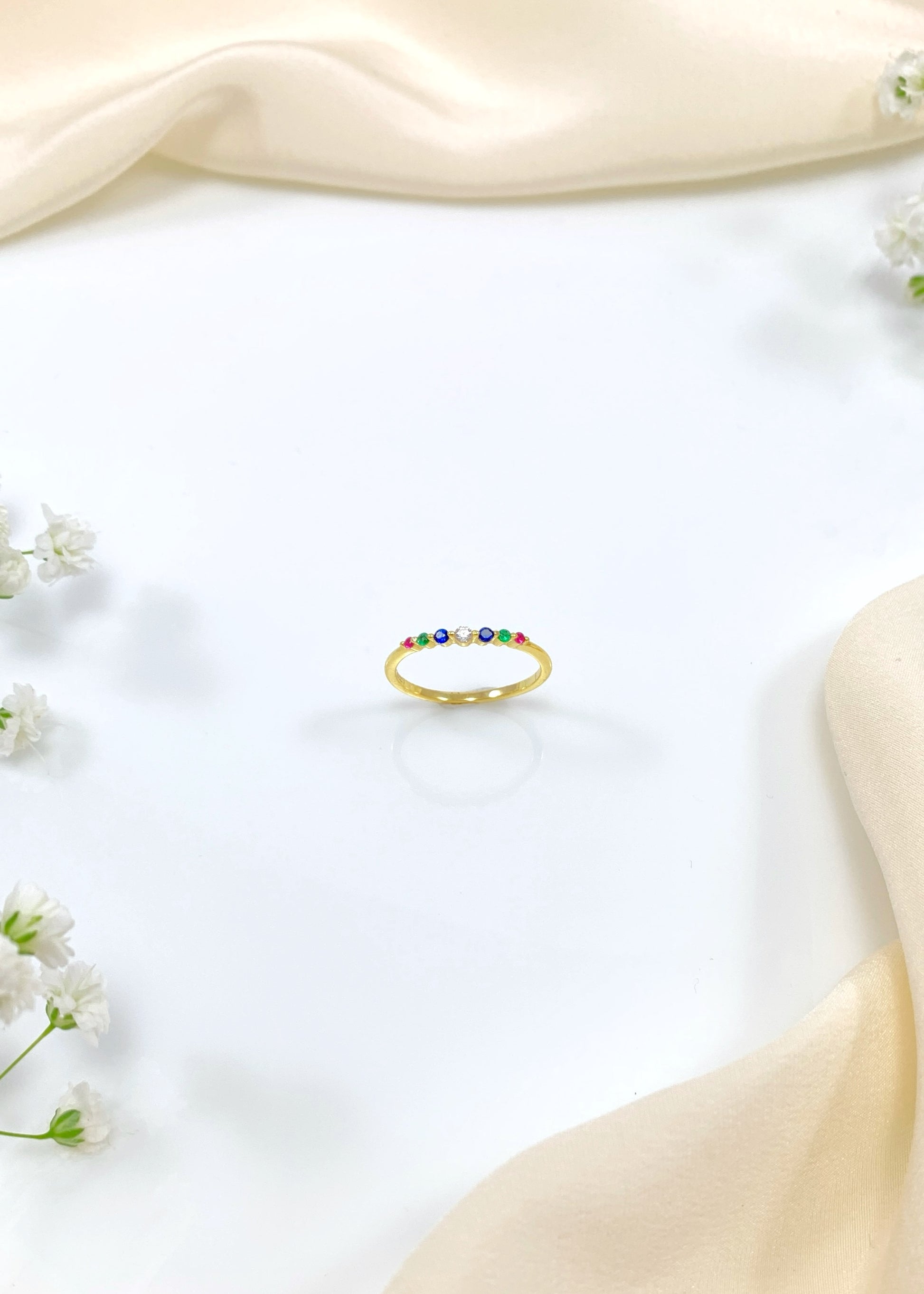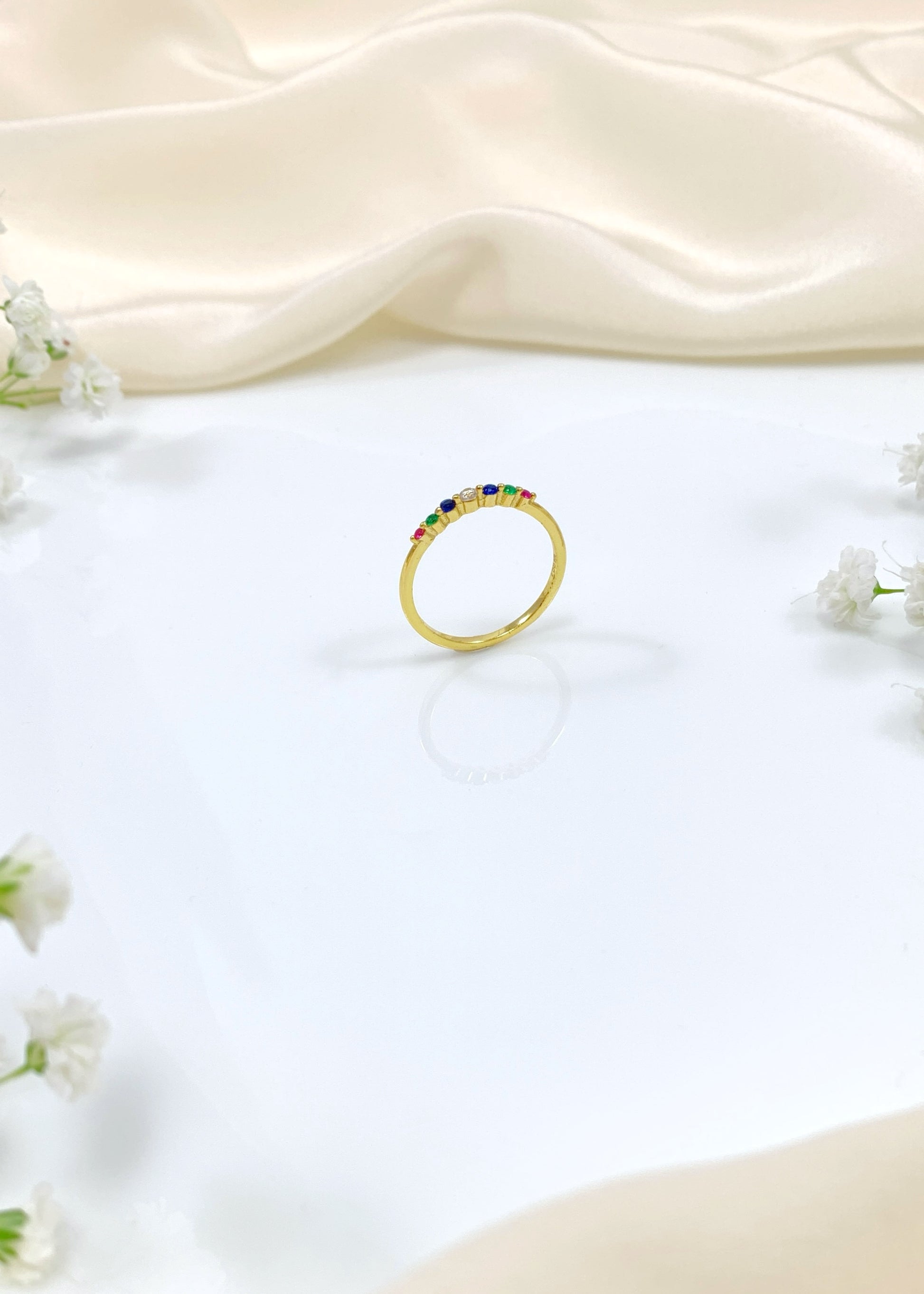Το δαχτυλίδι Aurora ξεχωρίζει για τη λεπτή του γραμμή και τη συνεχόμενη σειρά από πολύχρωμα, μίνιμαλ ζιργκόν που δημιουργούν μια διακριτική χρωματική συνοχή. Ο καθαρός, μινιμαλιστικός του χαρακτήρας το καθιστά ιδανικό τόσο για καθημερινή χρήση όσο και για συνδυασμούς με άλλα δαχτυλίδια.
