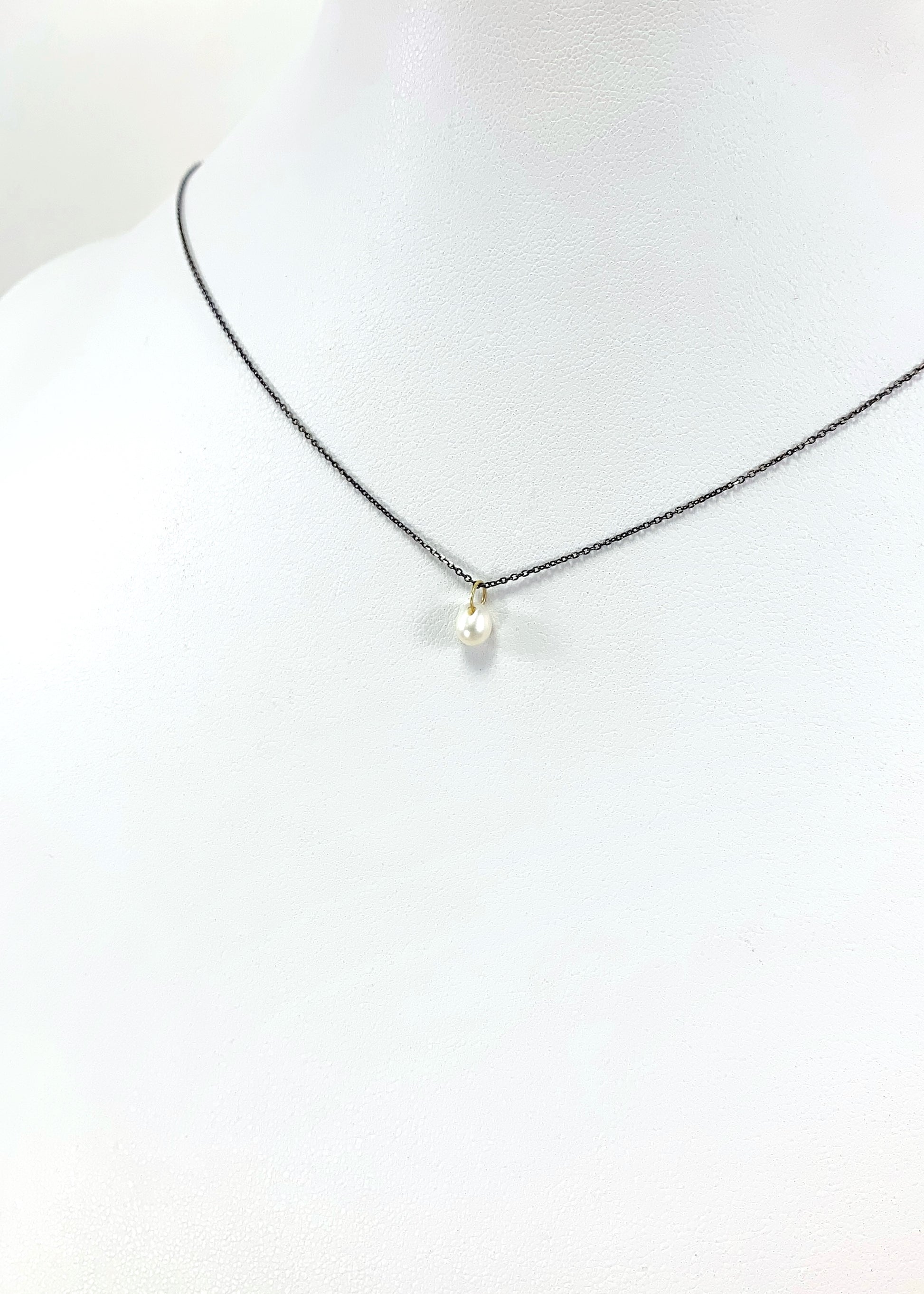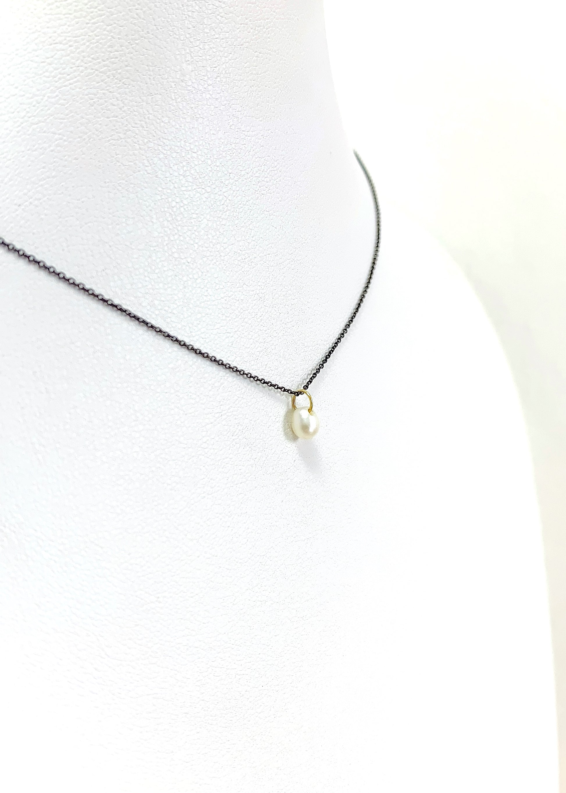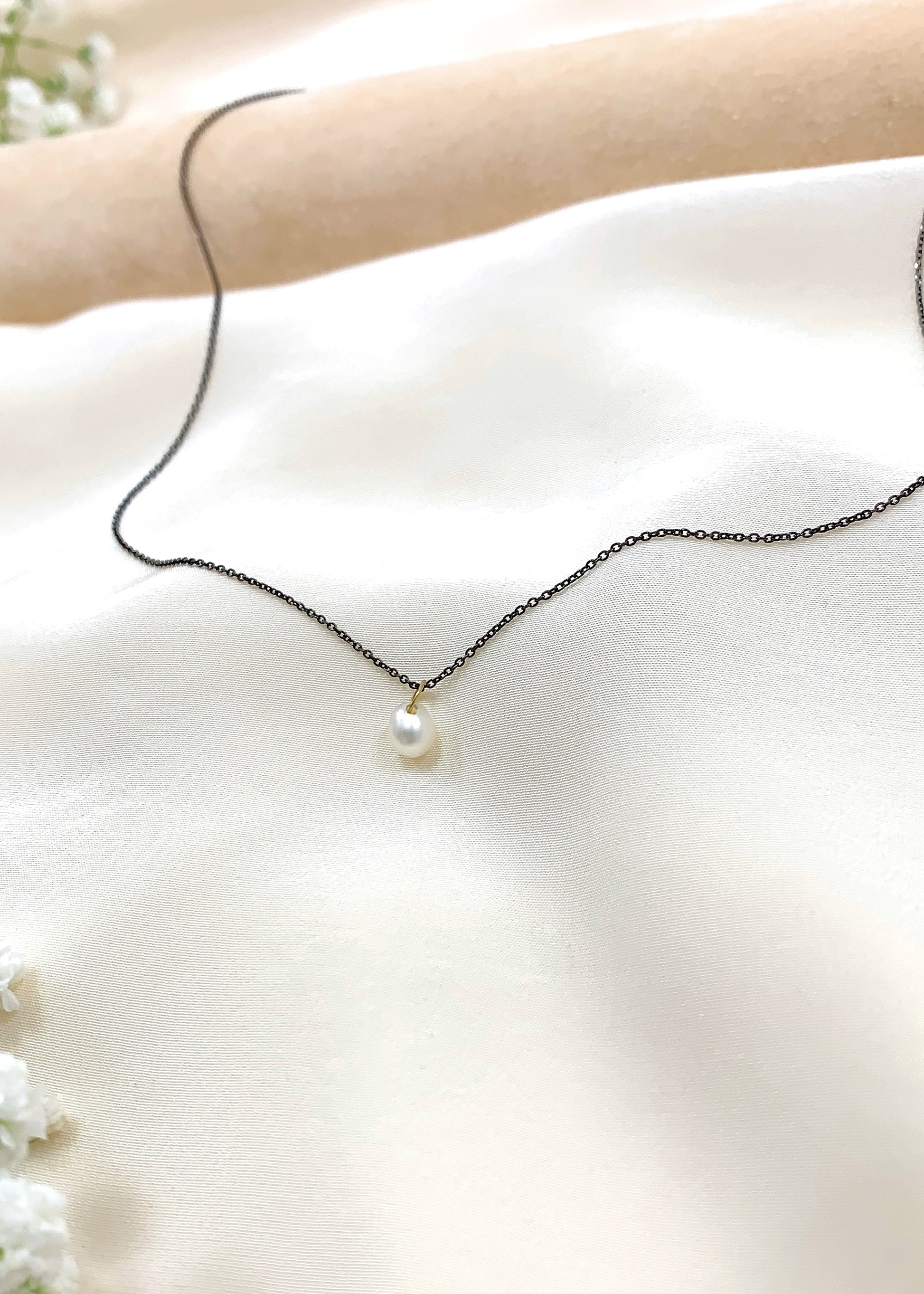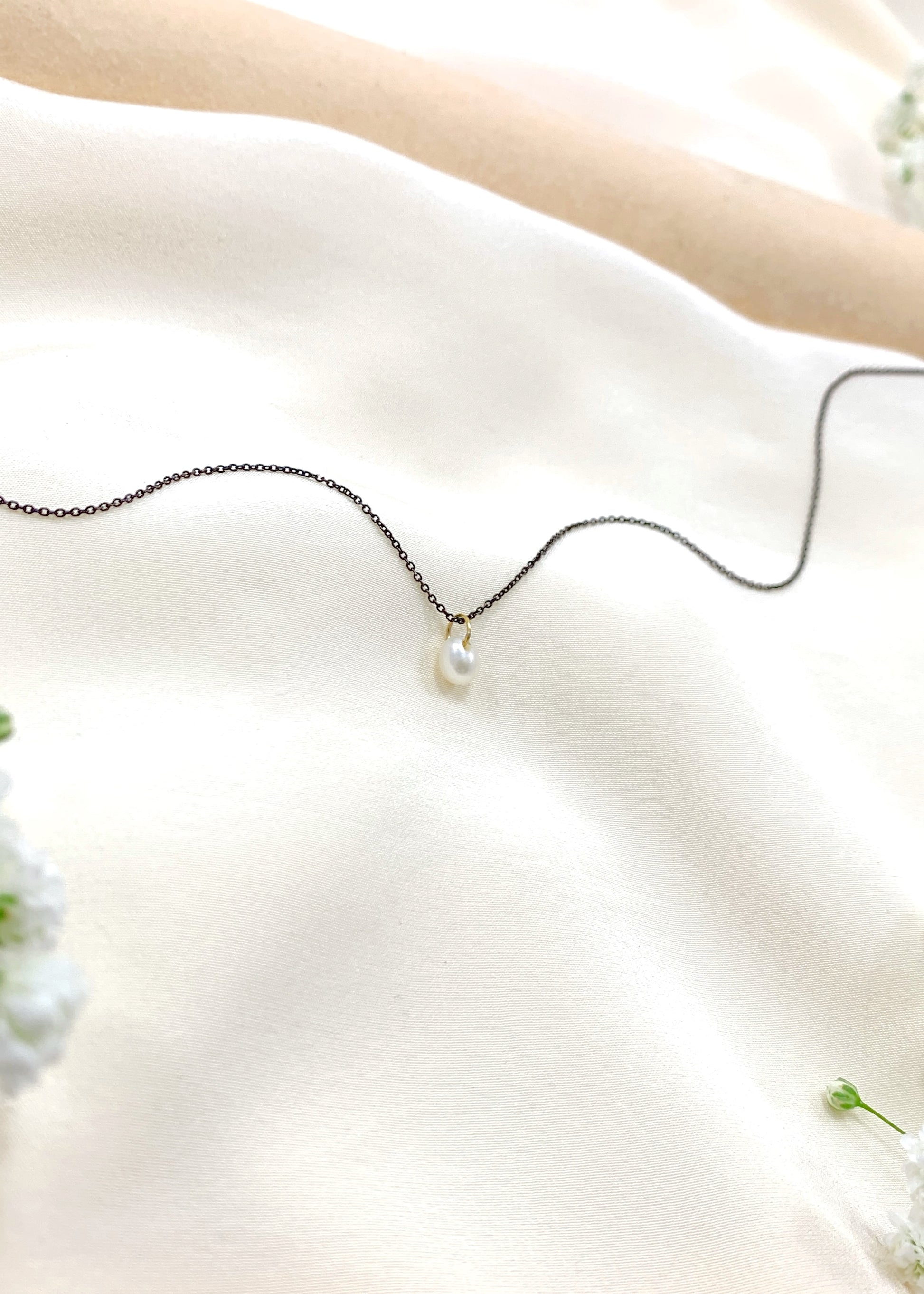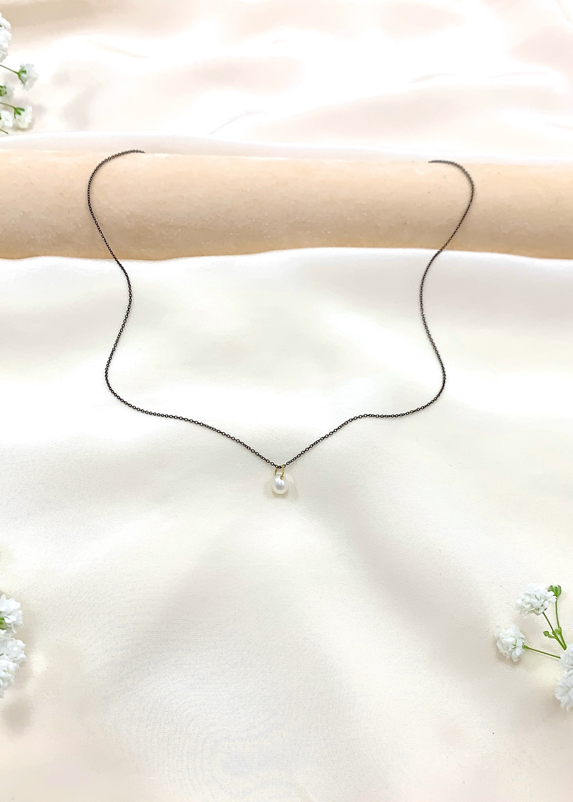 Η αλυσίδα, από ασήμι 925 με μαύρη οξείδωση, δημιουργεί ήπια αντίθεση και καθαρό περίγραμμα στον λαιμό, ενώ το κούμπωμα τύπου καβουράκι (lobster clasp), και μήκους 40 εκ., εξασφαλίζει σταθερή και άνετη εφαρμογή. Στο τελείωμά της, μια διακριτική σφραγίδα 925 υπογραμμίζει τη γνησιότητα του κοσμήματος.