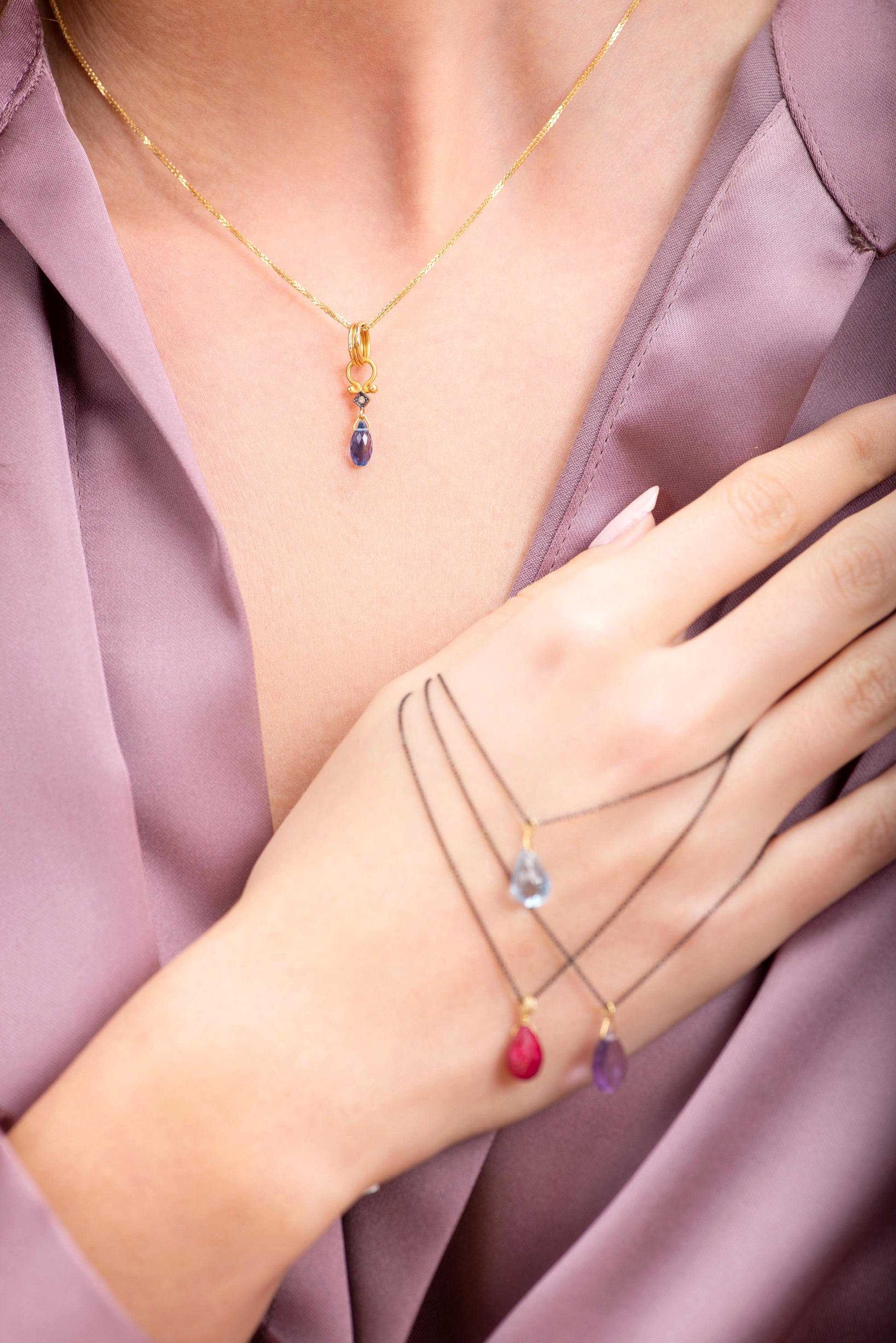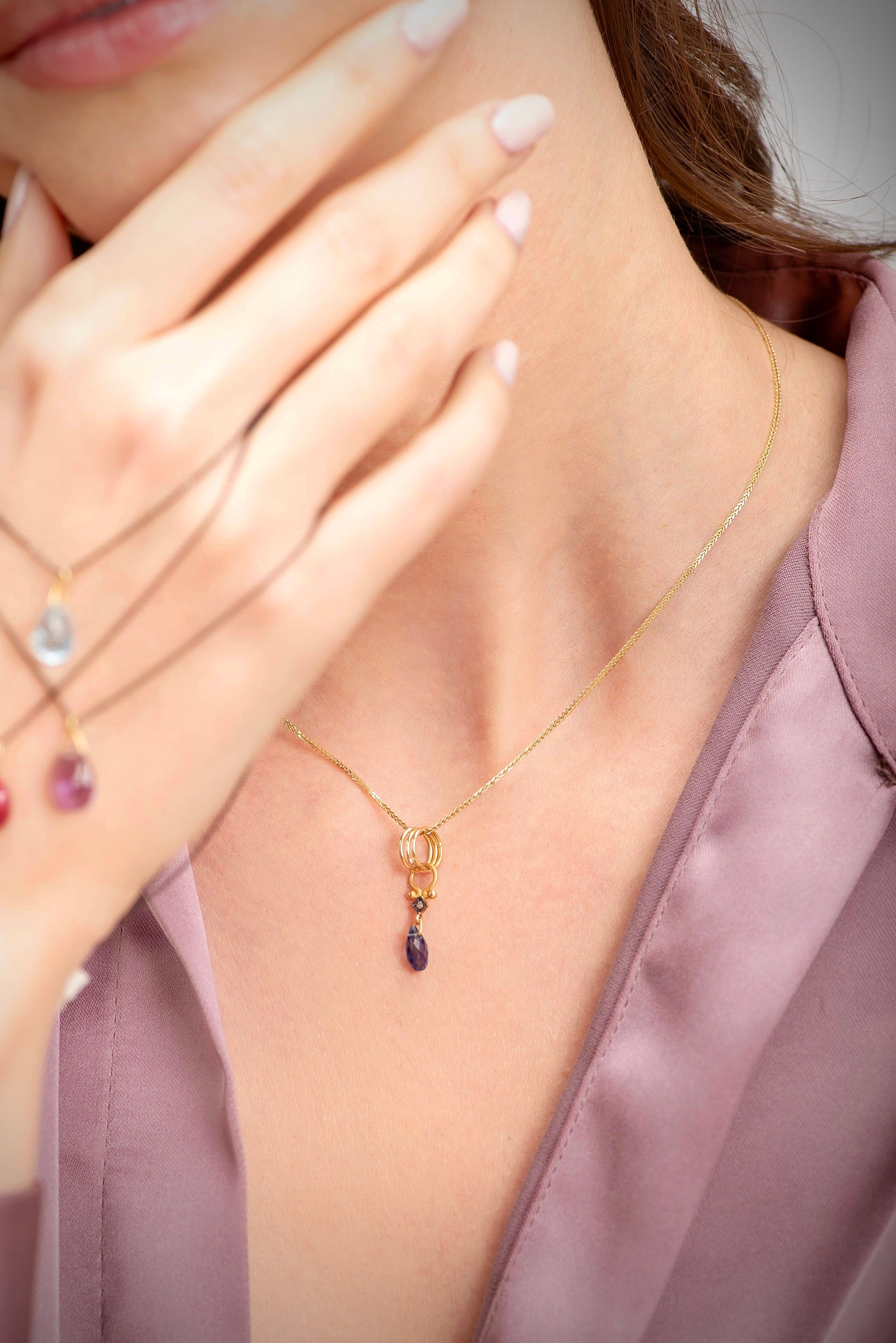 Το μενταγιόν, χειροποίητο εξ ολοκλήρου κατασκευασμένο από χρυσό 18 καρατίων, συνδυάζει γεωμετρική ακρίβεια και απλότητα, εκφράζοντας σχεδιαστική γραμμή που παραμένει αυθεντικά διαχρονική μέσα από φως και την κατασκευαστική του λεπτομέρεια.