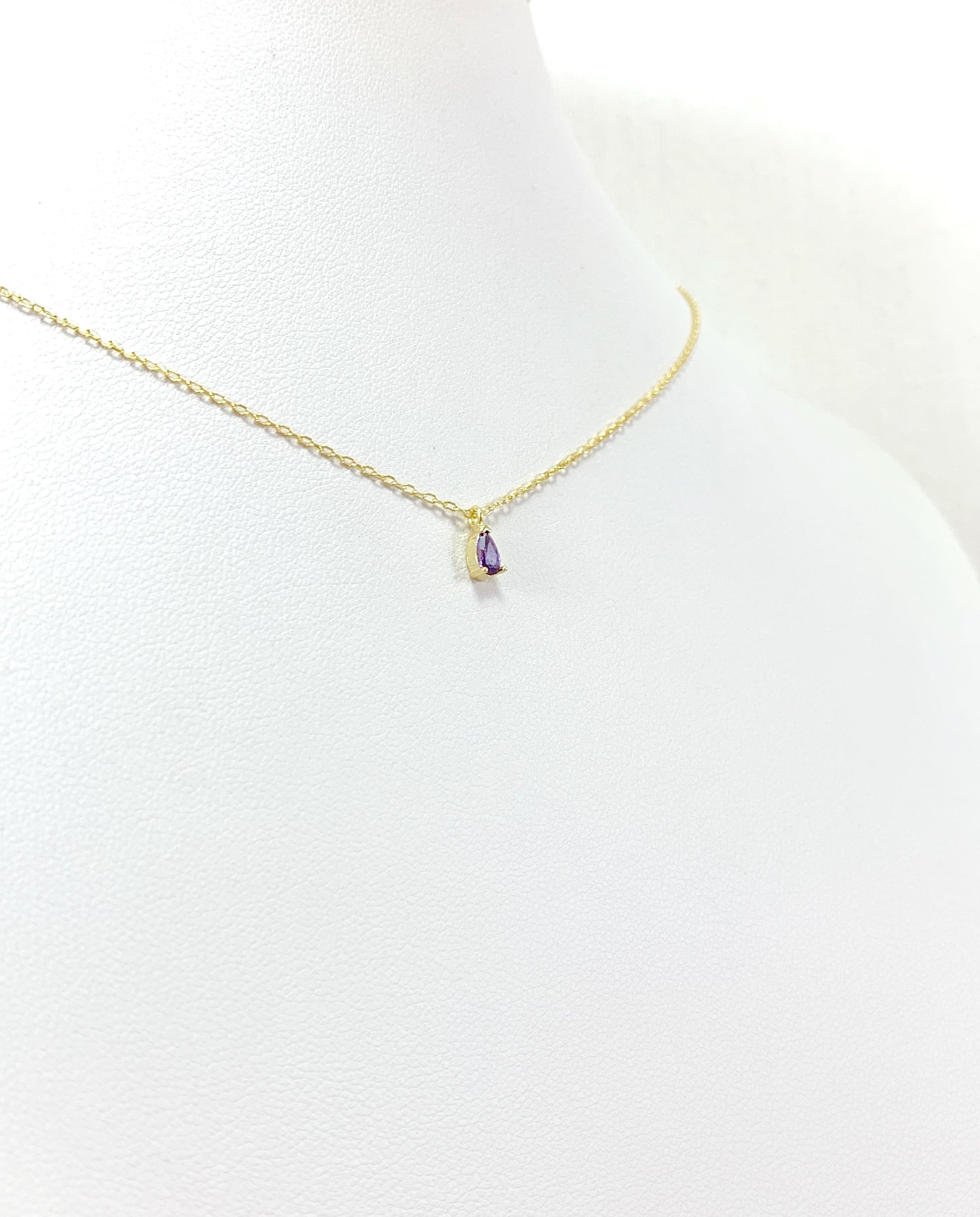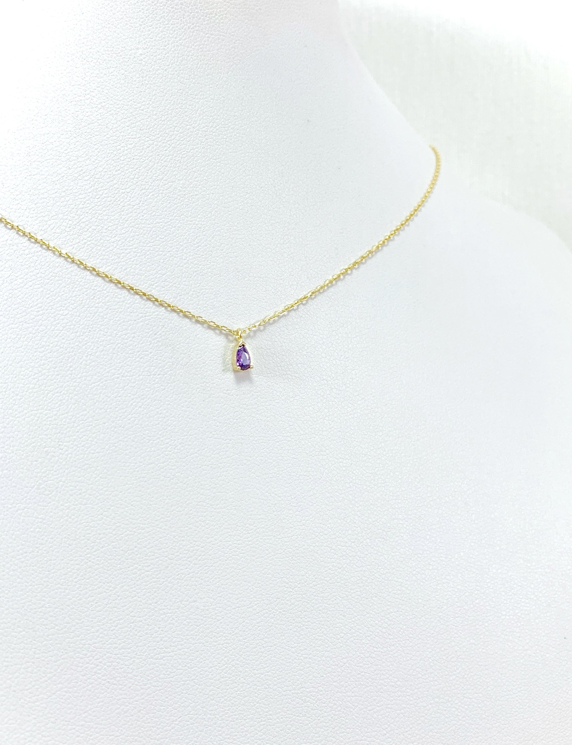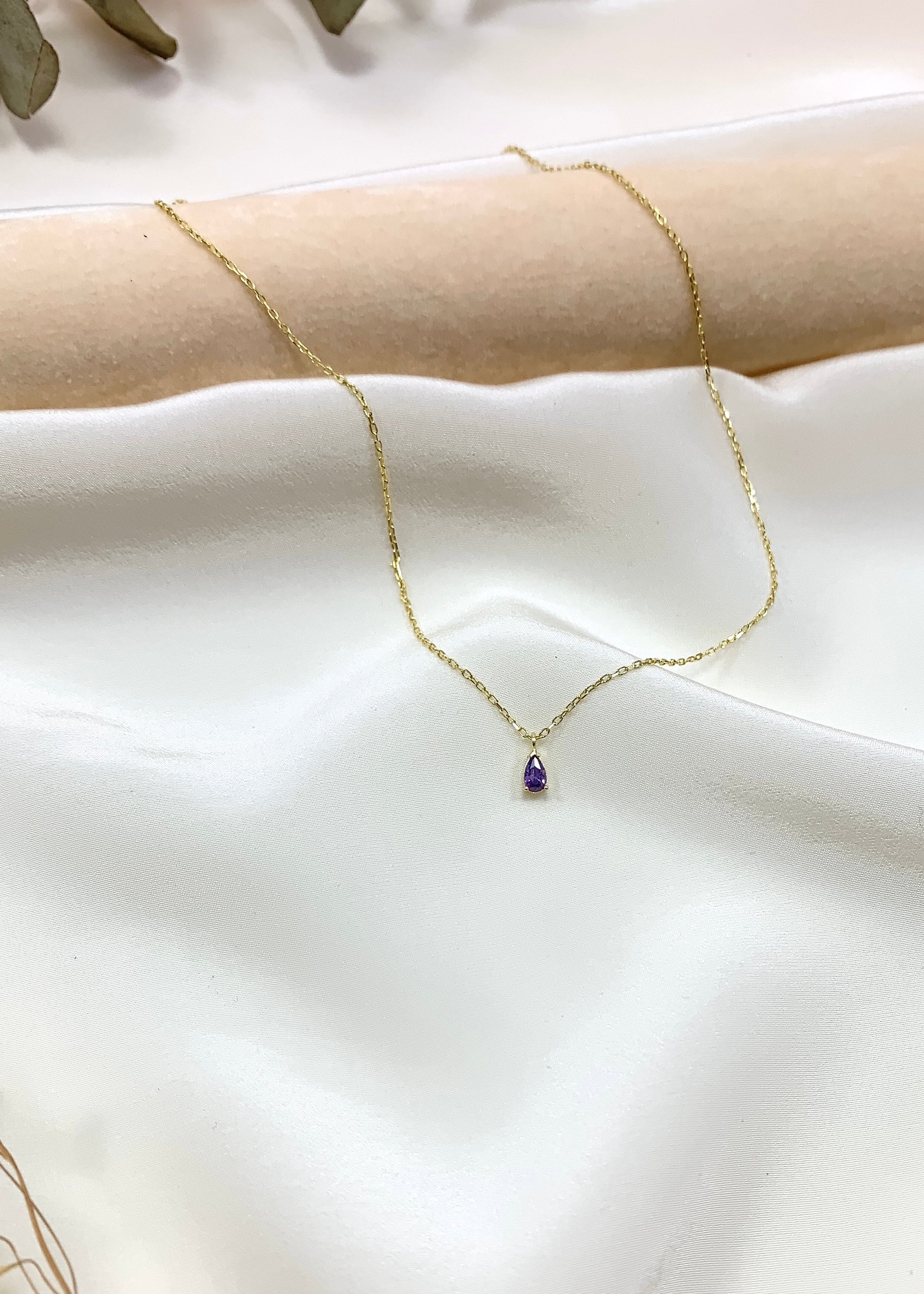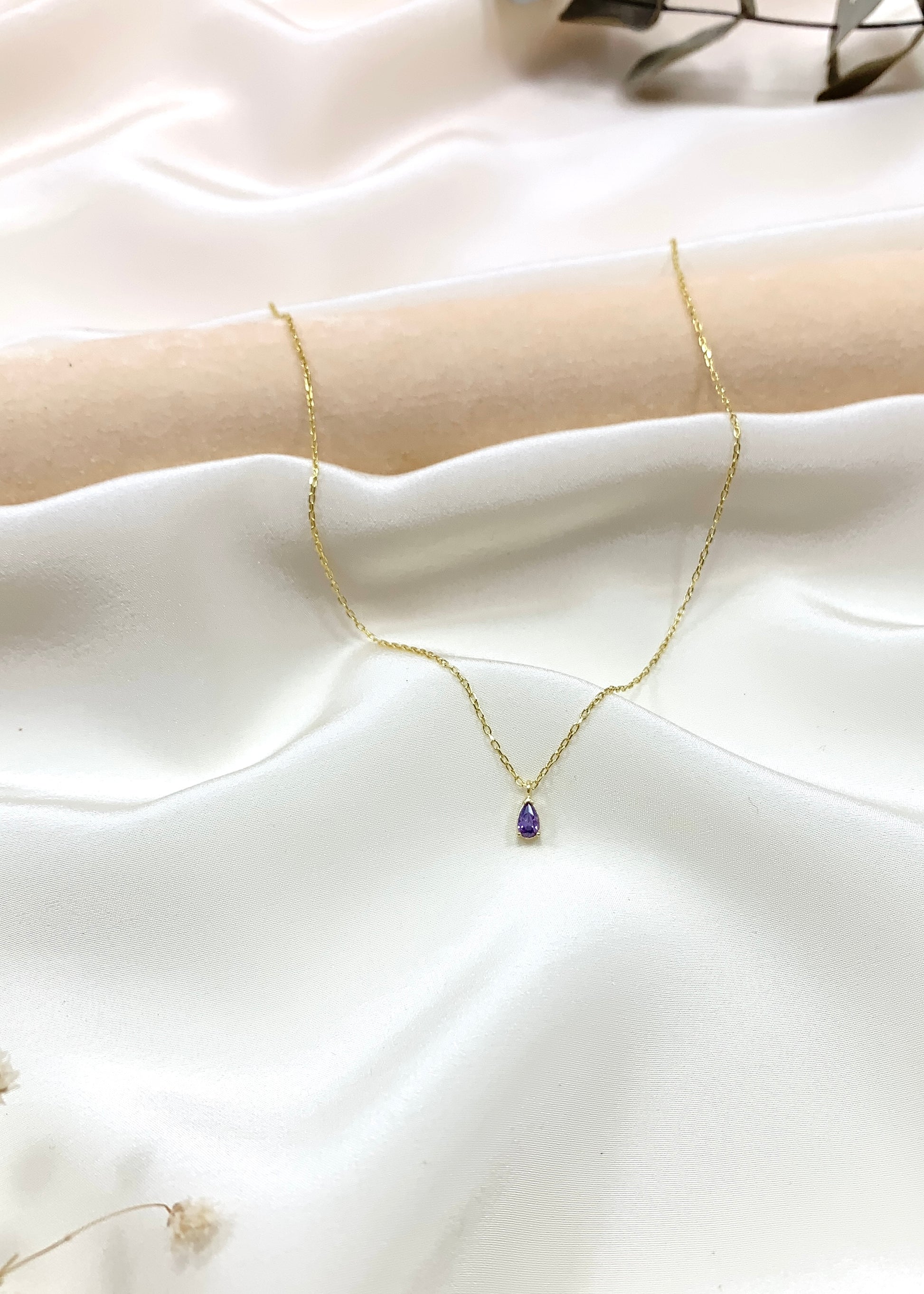 Το Iolanthe αποτυπώνει την καθαρότητα του φωτός μέσα από ένα drop‑cut ζιργκόν σε απόχρωση βαθύ βιολετί αμέθυστου, του οποίου οι έδρες δημιουργούν ένα λεπτό παιχνίδι αντανακλάσεων σε κάθε κίνηση. Το καστόνι που το περιβάλλει παραμένει σχεδόν αόρατο, υπογραμμίζοντας τόσο το minimal όσο και τη διαύγεια του ζιρκόν.