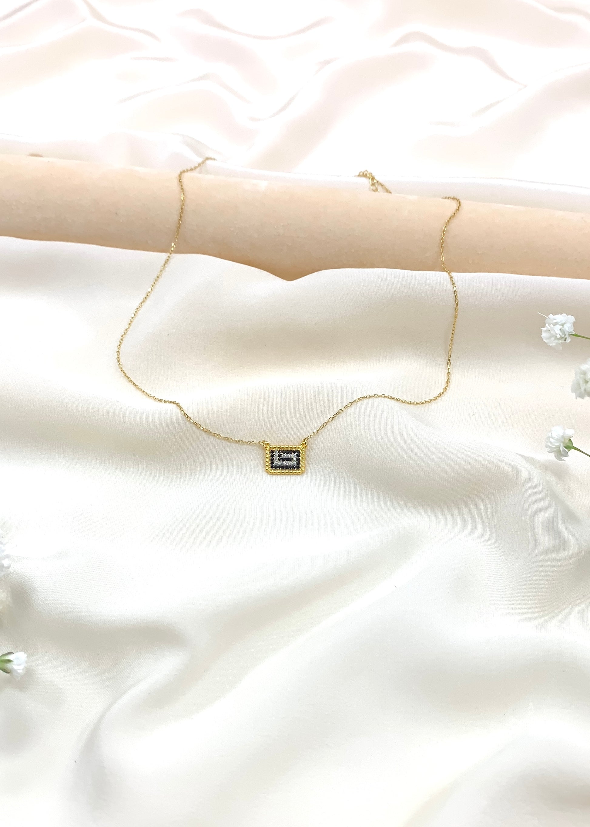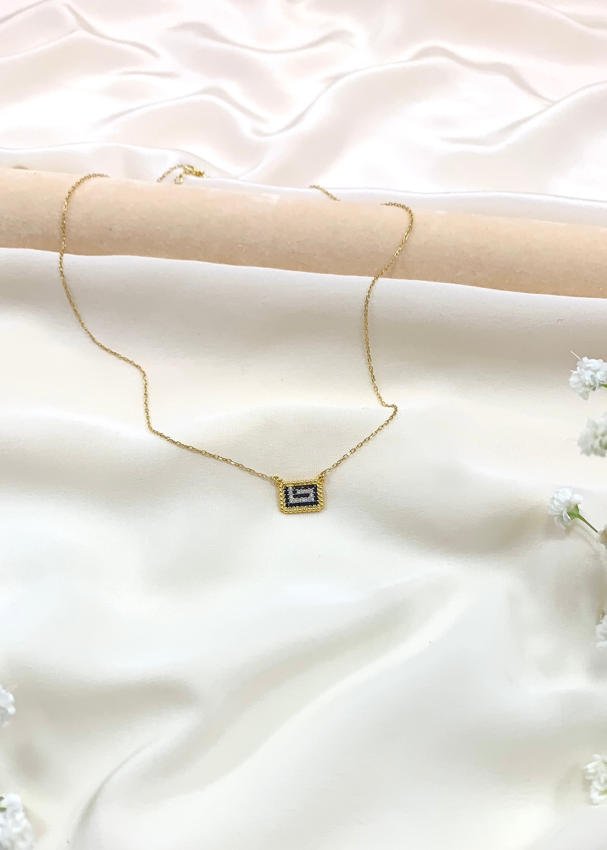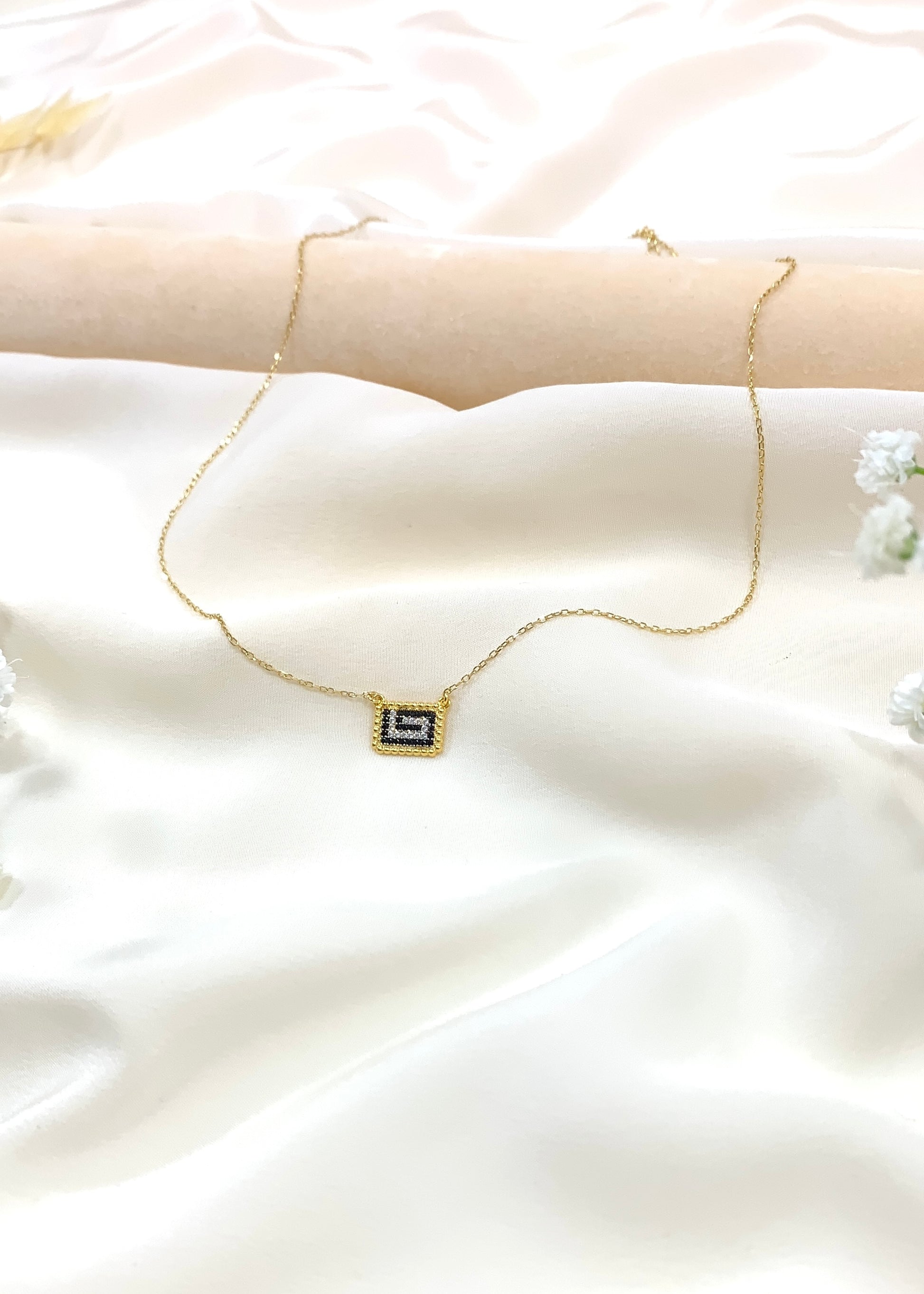 Ο ελληνικός μαίανδρος, αιώνιο σύμβολο νίκης και ενότητας, αναγεννιέται σε μια σύγχρονη εκδοχή με μαύρα και λευκά ζιρκόνια, τοποθετημένα με ακρίβεια σε επιχρυσωμένο ασήμι 925. Το γεωμετρικό μοτίβο συλλαμβάνει το φως και το μεταμορφώνει σε αίσθηση απείρου, χαρίζοντας στον λαιμό την κομψότητα μιας διαχρονικής υπογραφής.