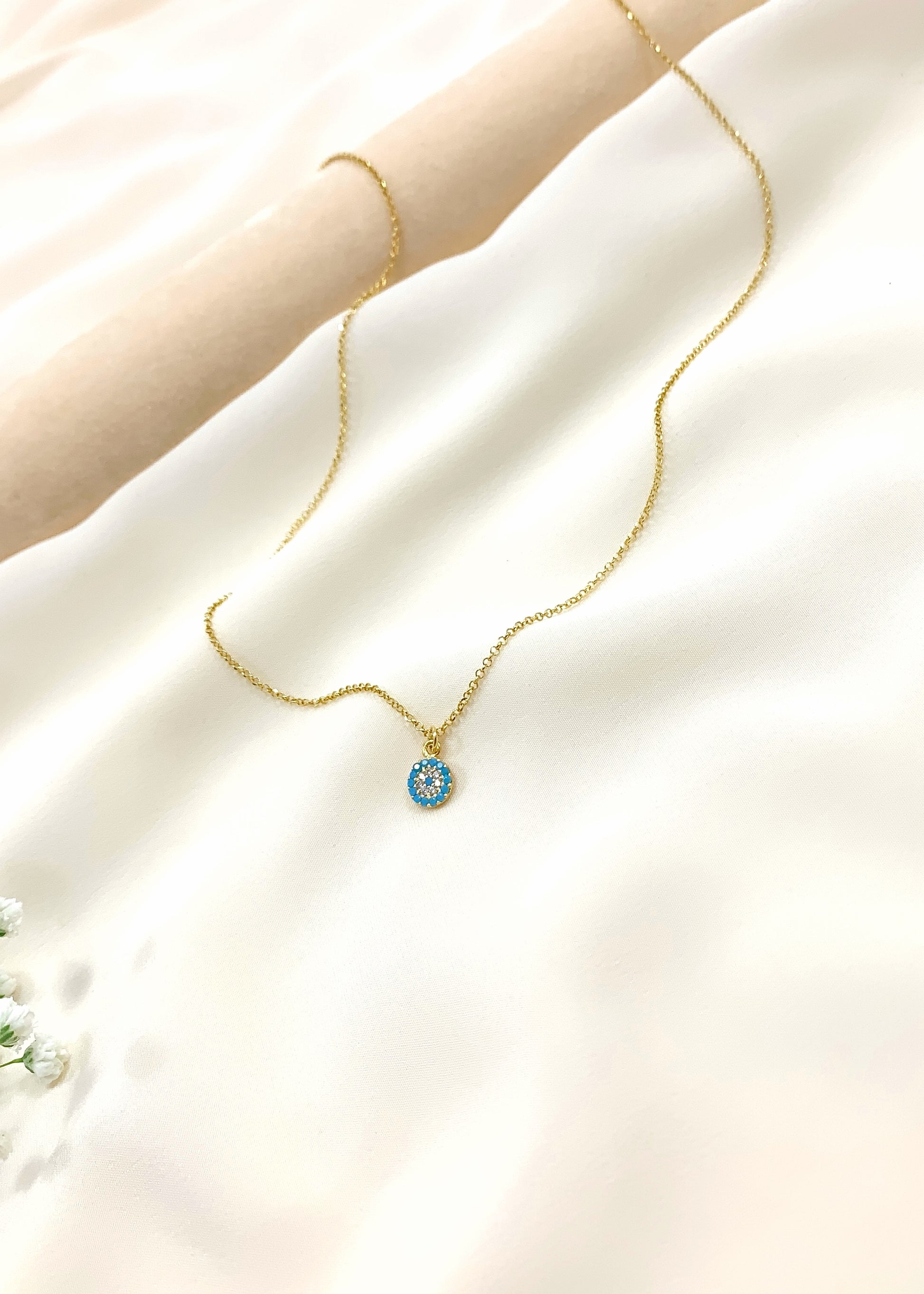 Το Nilah είναι ένα minimal eye-charm σε αλυσίδα από ασήμι 925 με επιχρύσωση.