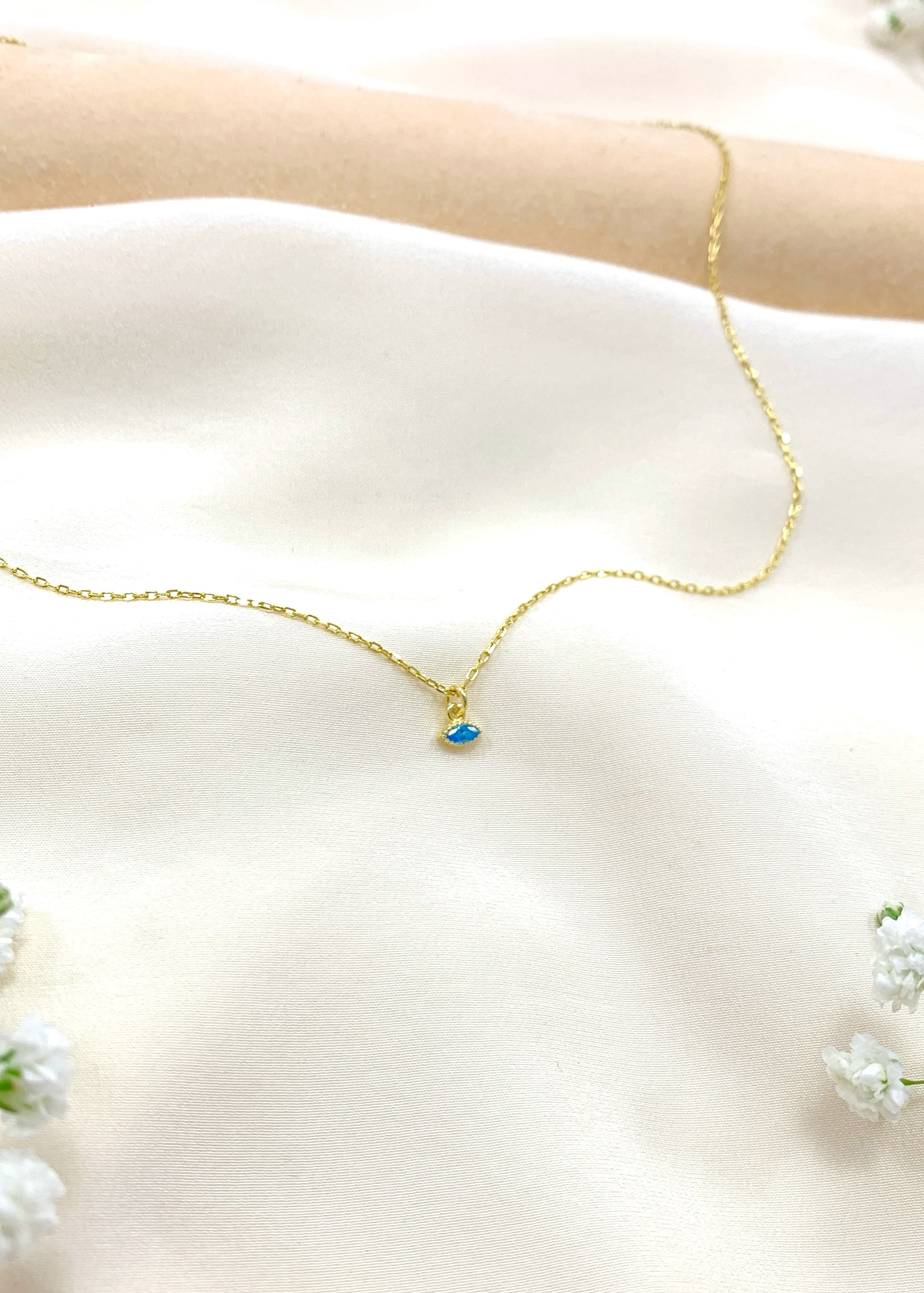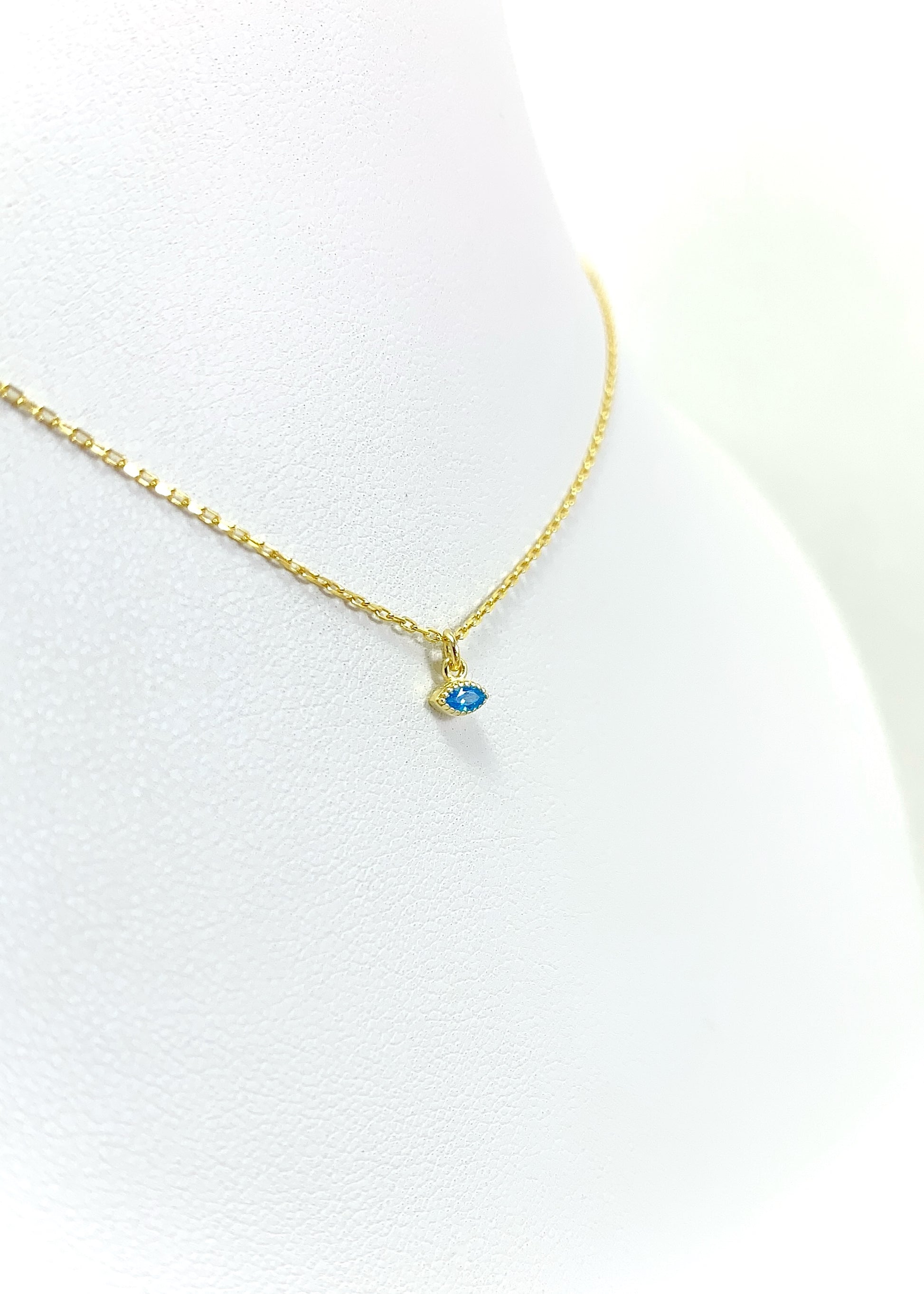 Το Noa είναι ένα από τα πιο μικρά και λεπτεπίλεπτα eye-charms της συλλογής. Με μπλε electric ζιργκόν σε καστόνι επιχρυσωμένου ασημιού 925 και μέγεθος μόλις 5 χιλιοστά, δίνει μια λεπτή δόση χρώματος που λειτουργεί σαν διακριτικό σημείο φωτός πάνω στο δέρμα.